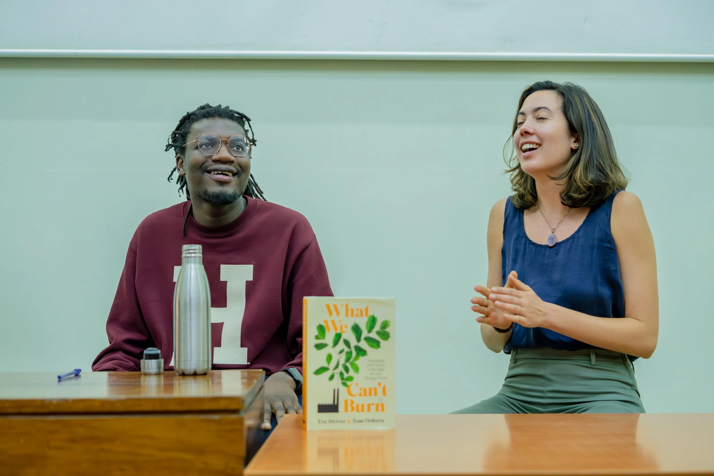 In 2024 I published What We Can’t Burn with Westwood Press. I co-wrote it in 2020 just after graduating from college. My coauthor and I alternate chapters and tell the story of our rocky, transformative friendship in hopes of illuminating both the power and pitfalls of good-faith disagreement — in our case, about the best way to transition off fossil fuels. I got to do a 30-stop book tour including bookstores, college classrooms, and festivals across the United States and Kenya. One of these stops was the Center for Ethics at Harvard, where I am now a fellow on their ‘civil discourse’ team. In Fall 2025, the book was recommended to all Harvard freshmen as part of their opening lecture. You can read reviews of the book and tour here and here.
